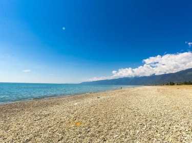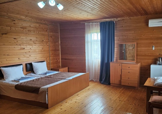 Расположен на первой линии, до пляжа Вас отделяет 150 м. Пляж огромный, песчано-галечный – его протяженность 6 километров. Вход в море пологий, что удобно, для отдыха с маленькими детьми и пожилыми родителями.