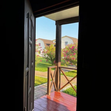 КК представлен закрытой территорией с охраной, насчитывает 24 двухэтажных дома и зданием кафе, со стойкой регистрации гостей.